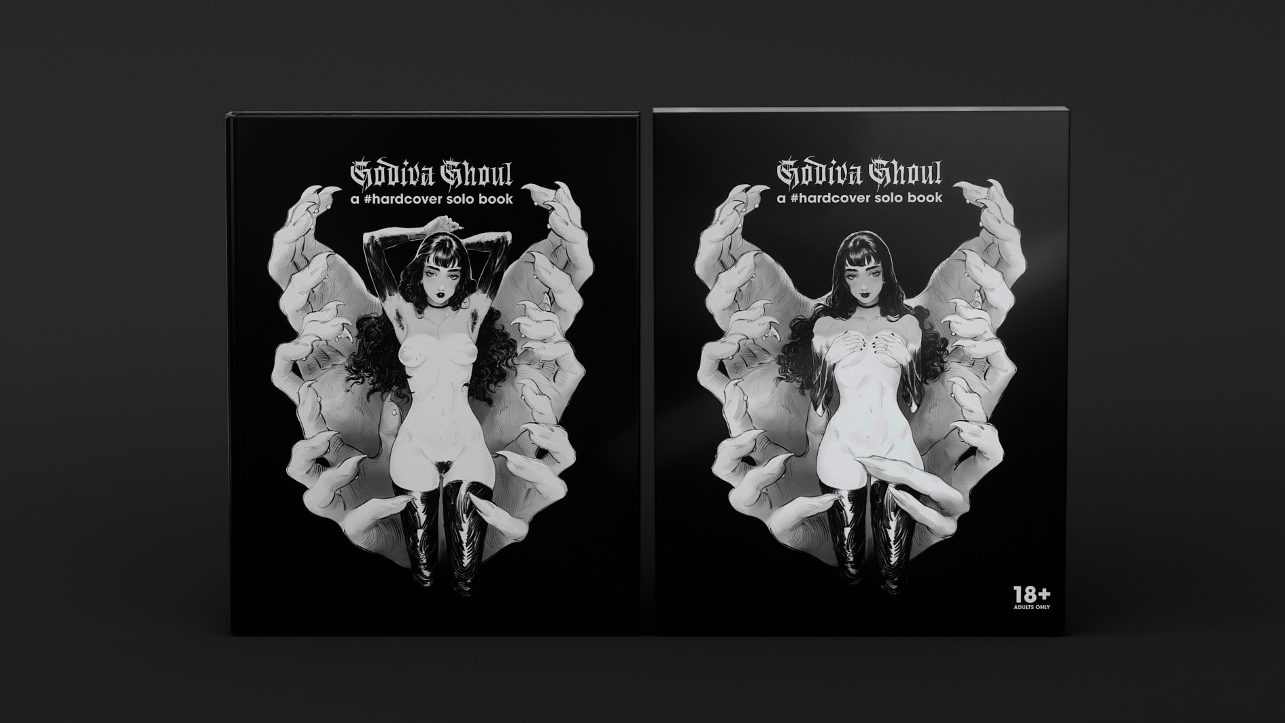 Après le succès des quatre tomes précédents de la série #hardcover qui réunissent les illustrations érotiques de très nombreux artistes, voici #hardcover solo: Godiva Ghoul, le deuxième volume de la série #hardcover solo book, succédant à #hardcover solo: OthalaM et vient agrandir le projet #hardcover, une collection qui a pour but de contrer la censure que les plateformes numériques imposent aux artistes.