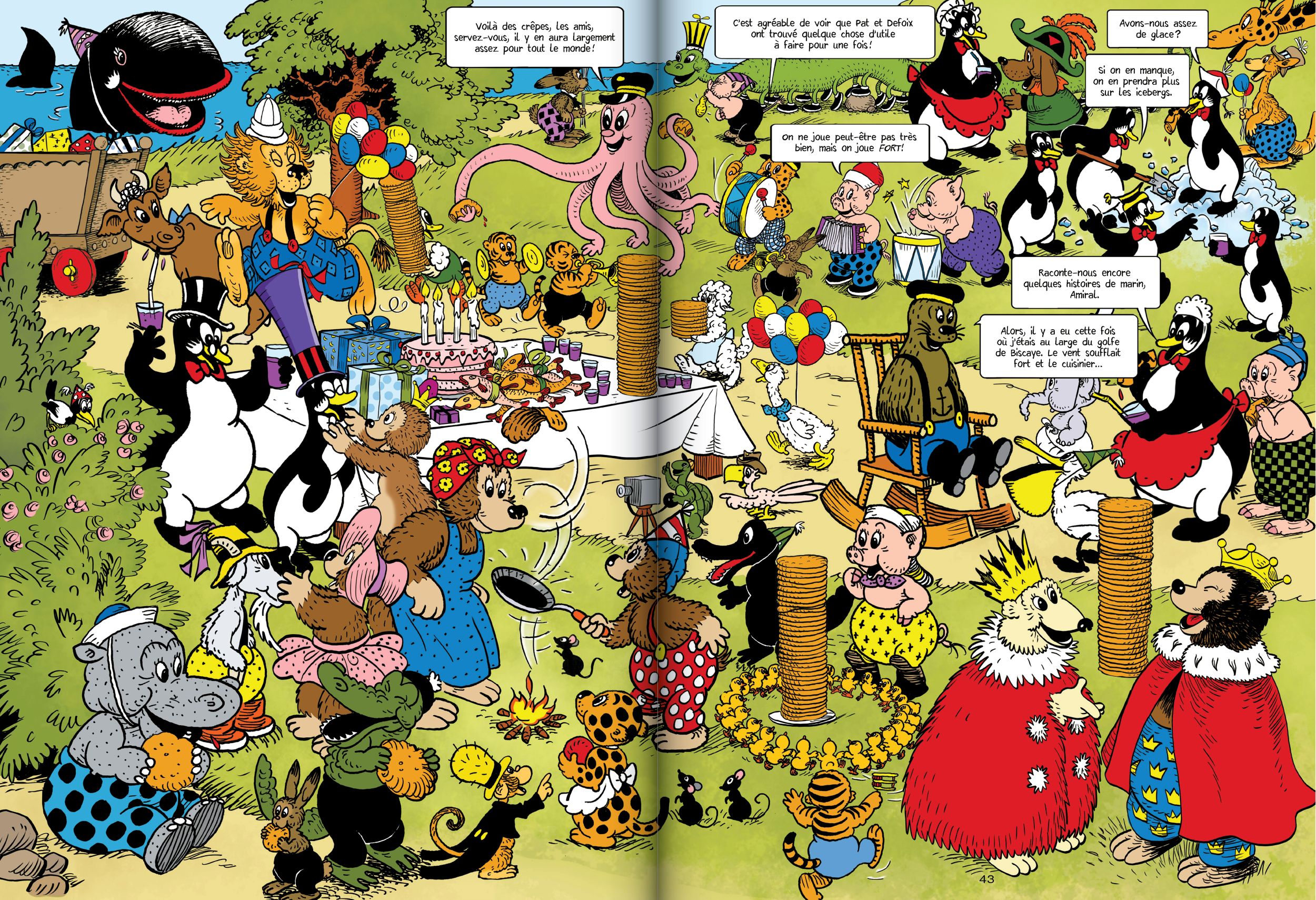 « Tout le monde est gentil dans cette BD, tout est possible aussi, et bien sur tout se termine bien. Aucune vraisemblance, aucune logique, mais la joyeuse troupe des amis animaux part à l’aventure sans aucun plan, sans qu’aucun obstacle ne la retienne et ils évoluent dans un monde à hauteur d’enfant où tout est possible : il suffit de le déclarer !