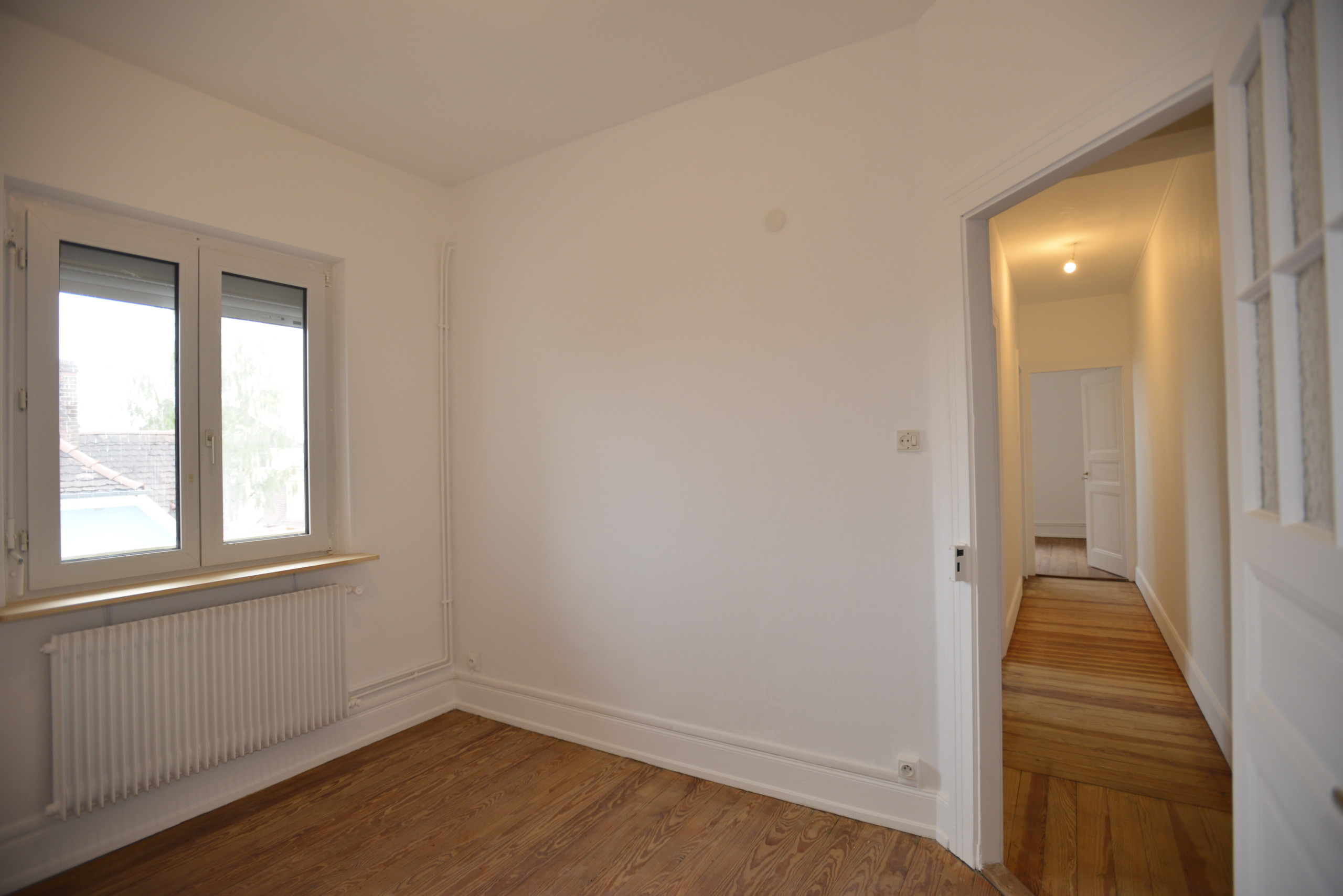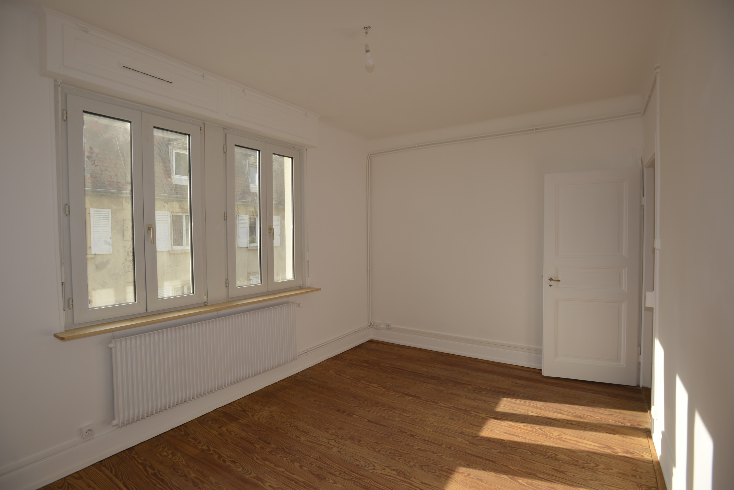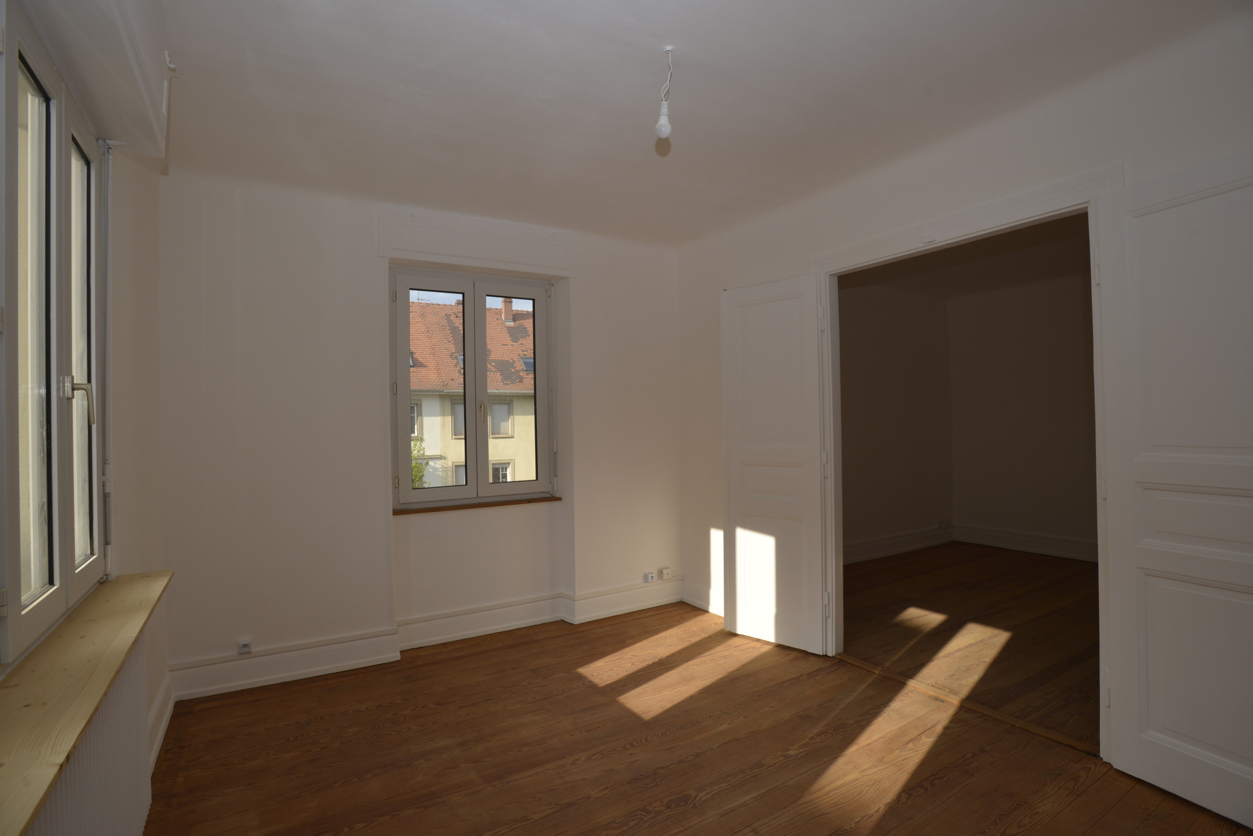 Nous louons un appartement de 87,5 m² (carrez), au 2e étage d’un petit bâtiment des années 1930, dans un beau quartier, très calme (vieux Cronenbourg, juste à côté de l’église Saint-Florent). Entièrement refait à neuf en mai 2021, beaucoup de charme (plancher dans toutes les pièces), très lumineux, à quelques minutes du centre de Strasbourg.