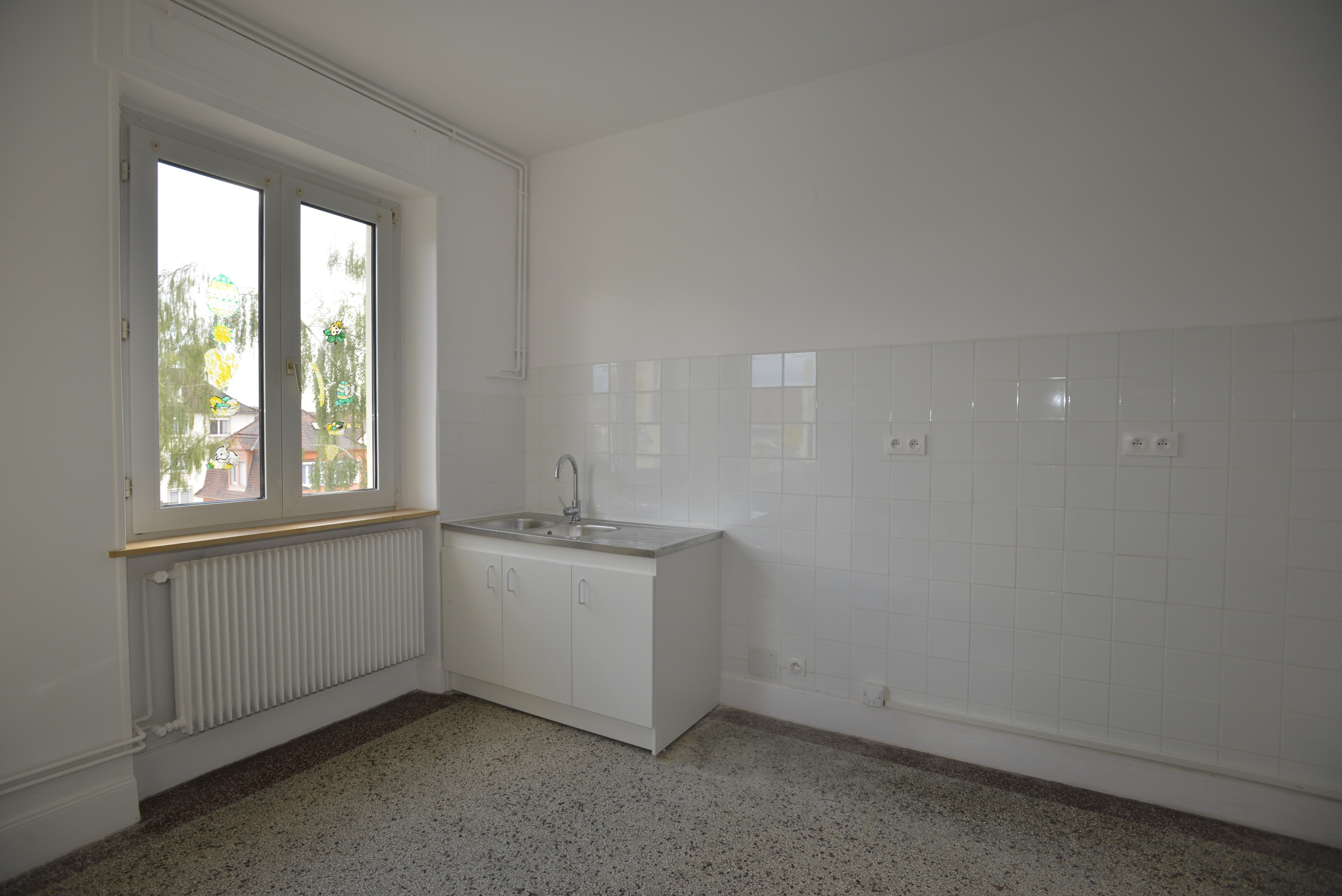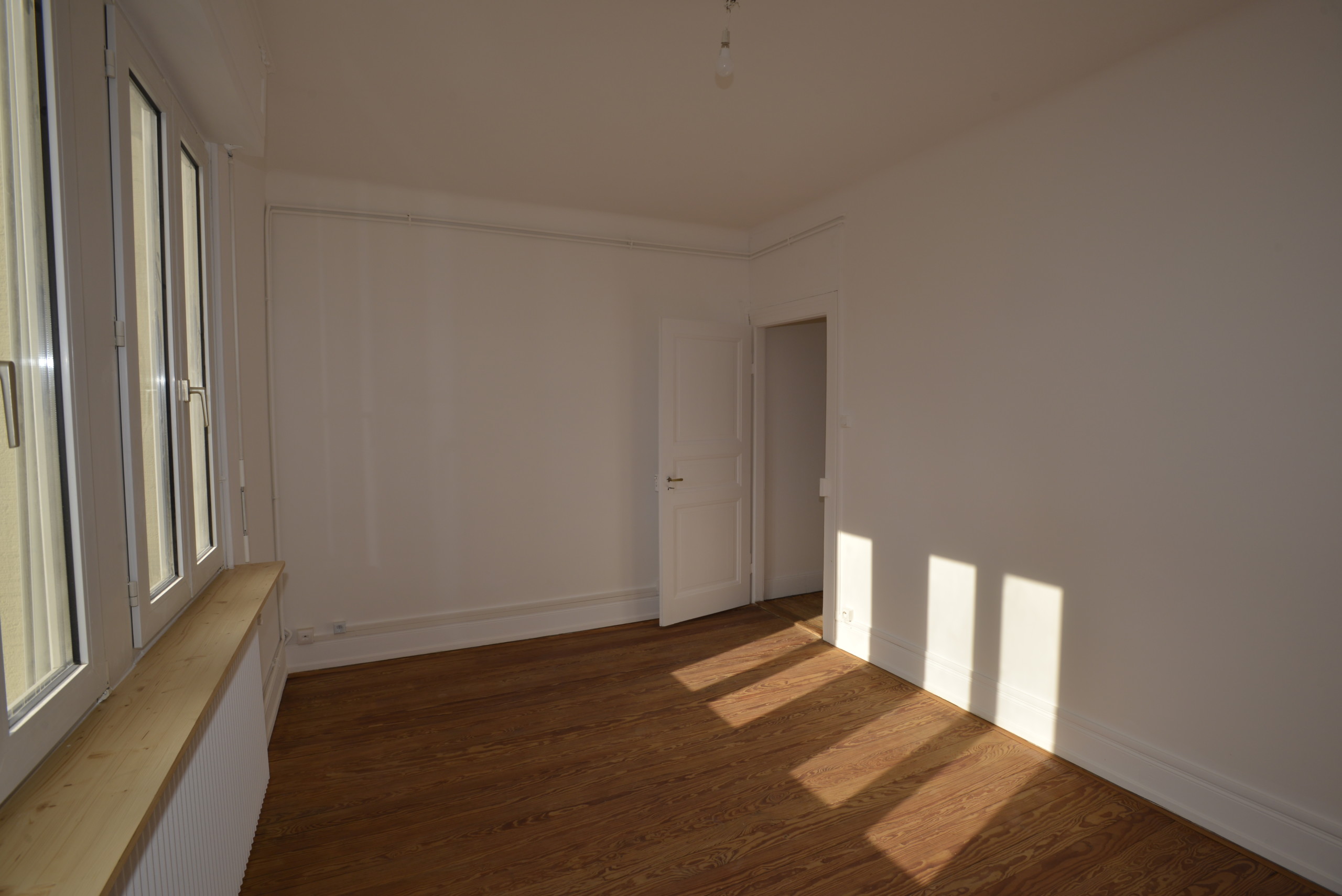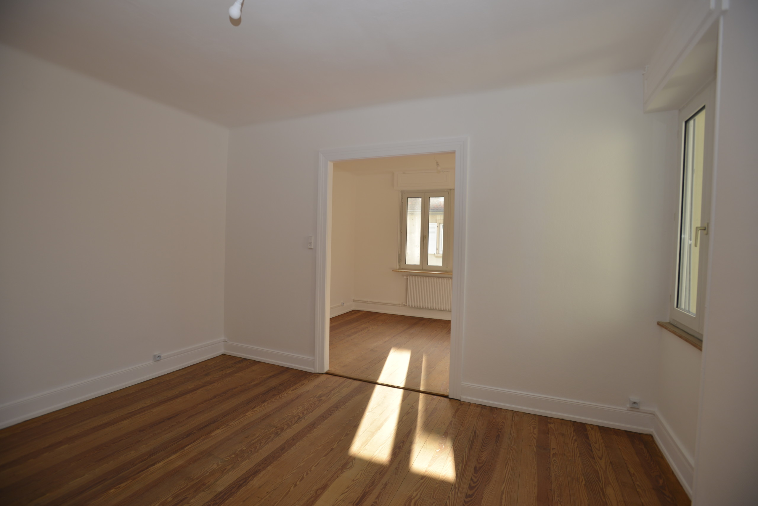 Nous louons un appartement de 87,5 m² (carrez), au 2e étage d’un petit bâtiment des années 1930, dans un beau quartier, très calme (vieux Cronenbourg, juste à côté de l’église Saint-Florent). Entièrement refait à neuf en mai 2021, beaucoup de charme (plancher dans toutes les pièces), très lumineux, à quelques minutes du centre de Strasbourg.