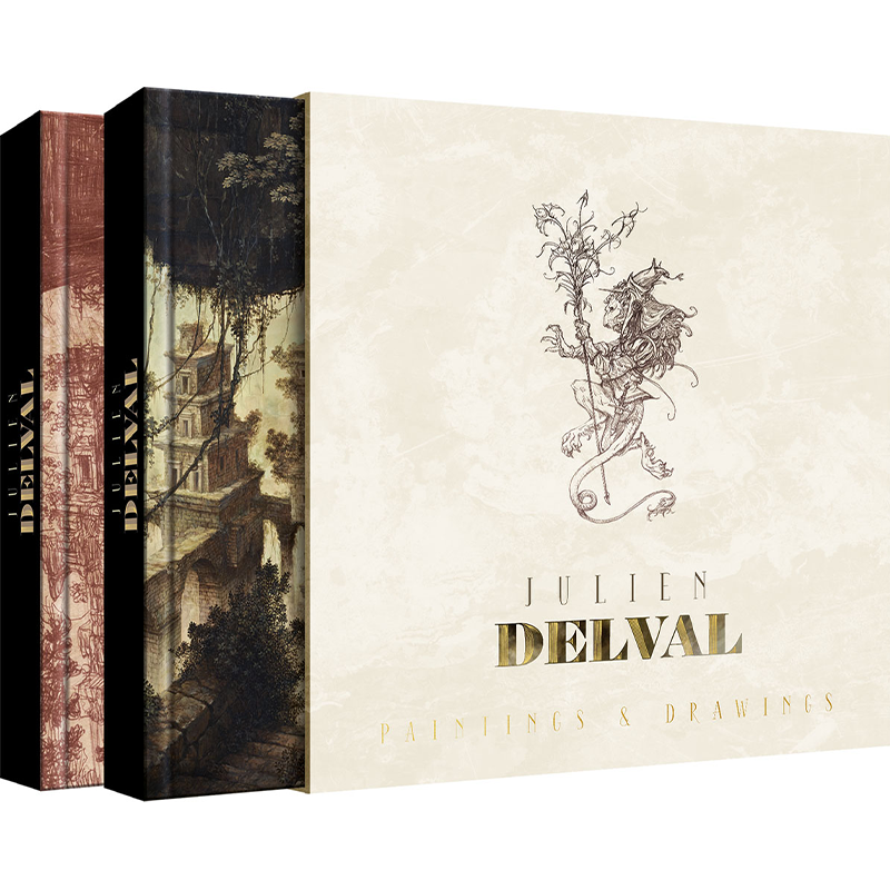 These volumes also come with a small book containing five lengthy interviews which unravel some of the secrets of Julien Delval’s art. Conducted by artists and friends, they discuss youth, inspirations, comics, painting, nature, ruins, the Antique, Romantism, the art market and much more…