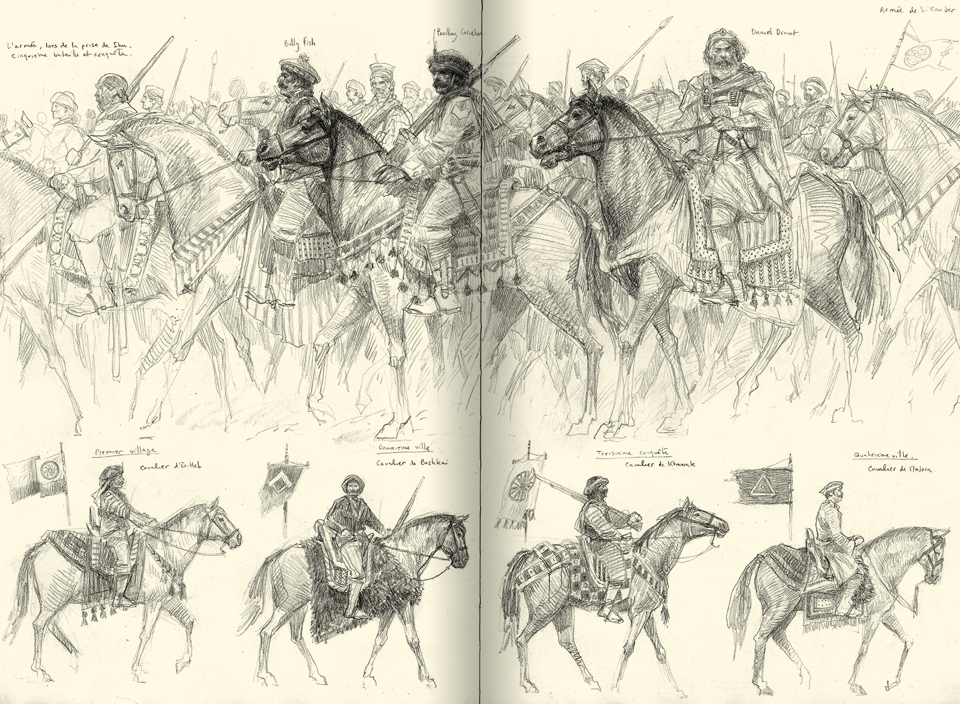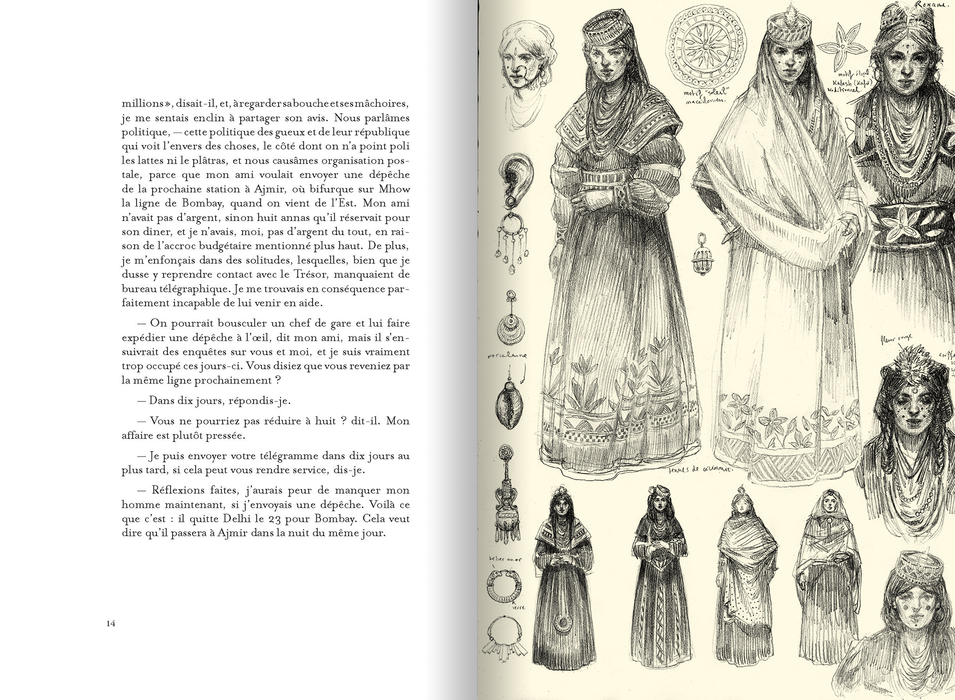 Everyone knows Kipling’s story, if only by name, but few know that the venturesome duo, Dravot and Carnehan, were accompanied by Armel Gaulme, a French artist who documented their journey. Unfortunately, the notebooks of this third man, who remained in the shadow of the other two, were lost and thought to be lost forever. It is quasi-miraculous that they have resurfaced more than a century after their disappearance and that Ăditions Caurette can now publish this unique testimony of a vanished world…