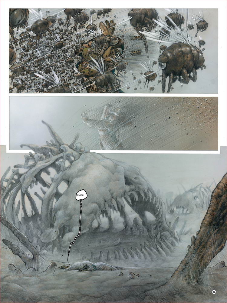 In December 1996, La Deuxième Lune, first opus of the saga, is published. At this time, this new comic album, made with direct colors, was like a bomb thrown in the comic industry. From the first pages, the singularity of the artist explodes and takes us in a universe to be discovered step by step… for our greatest pleasure!