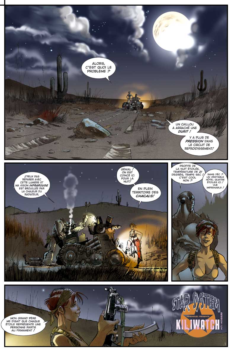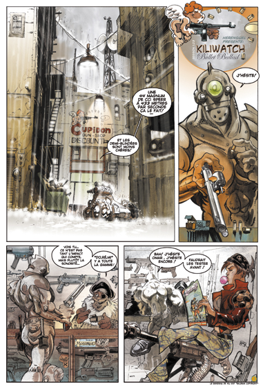 KILIWATCH is a collection of short stories starring Kiliwatch, a tenacious character with a strong personality and Banjo, robot by profession… These two adventurers from a not too distant future have an innate gift to find themselves in troublesome situations that they manage to escape from thanks to easy solutions… That often involve a lot of spiteful remarks and a little help from their big guns!