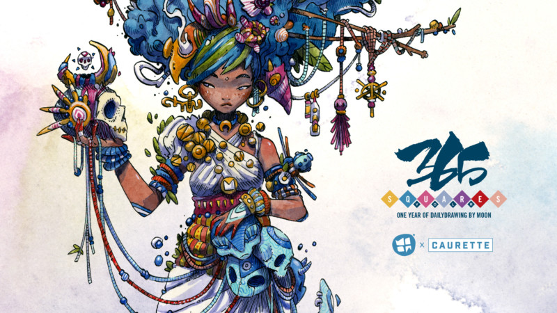 365 Squares c’est le projet un peu fou de Moon de réaliser un dessin par jour pendant un an sur un carré de 15 x 15 cm. Vous y trouverez des dessins réalisés avec différents mediums (graphite, crayons de couleur, encre, aquarelle, etc). Ce 3ème volume aura le même format que les rééditions des tomes 1 et 2, pour continuer cette belle collection. Le livre est un superbe artbook d’environ 380 pages au format 21 x 21cm (8,2 x 8,2 inches) avec une couverture cartonnée.
