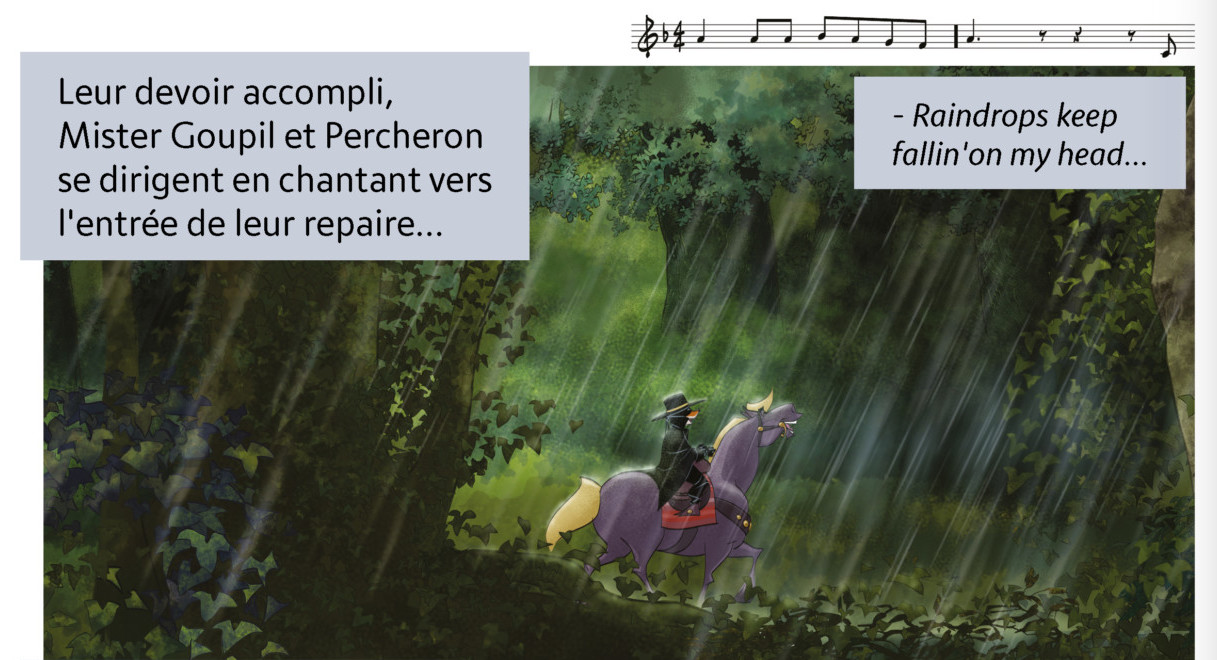Et pendant que Mister Goupil se bat, Sir Persh passe du bon temps avec ses vieux amis, Rossinante et Rucio, montures (dans d’autres aventures) des fameux Don Quichotte et Sancho Pança.