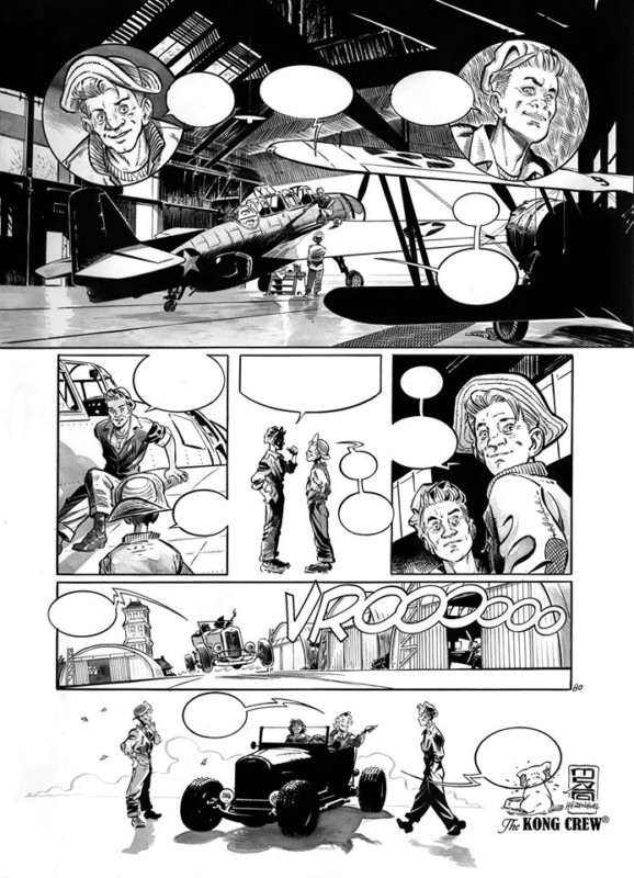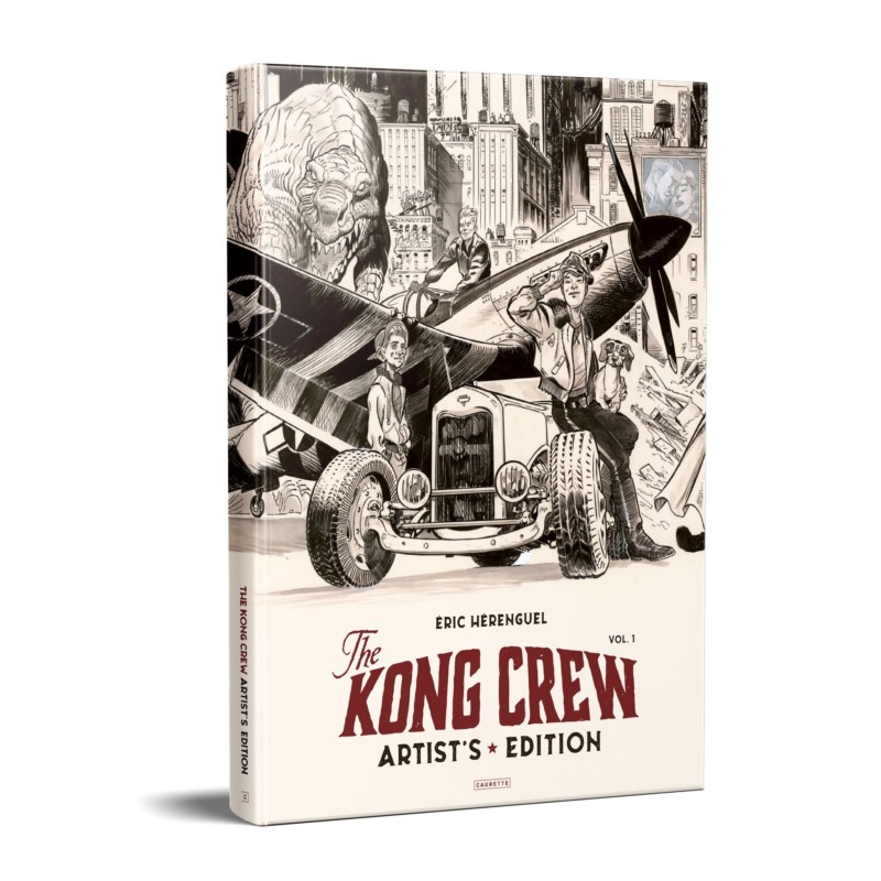 J’en profite pour vous donner quelques nouvelles du tirage de luxe que nous attendons tous avec impatience : suite au virus dont vous avez probablement entendu parler (!), nous avons pris deux mois de retard dans la fabrication et nous en sommes vraiment navrés. Mais du coup, pendant cette période, on en a profité pour étoffer l’album avec une longue interview d’Eric et de nouvelles pages d’illustrations et de photos. Et pour nous faire pardonner, nous avons décider d’offrir à tous ceux qui ont précommandé le tirage un exemplaire du tome 3 au format ‘comics’ qui sera livré avec leur commande. Cette offre est d’ailleurs valable pour tous ceux qui pré-commanderont le tirage avant sa sortie officielle et vous permettra de découvrir en avant-première la suite des aventures de la Kong Crew !
