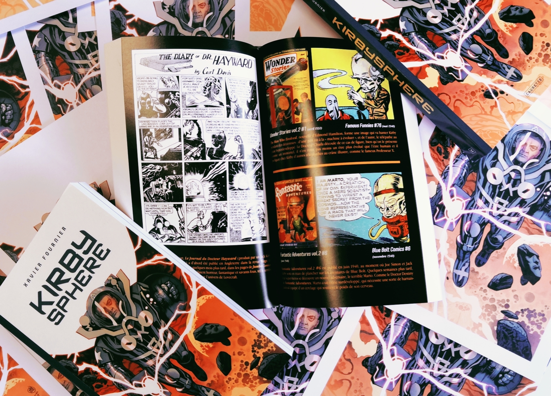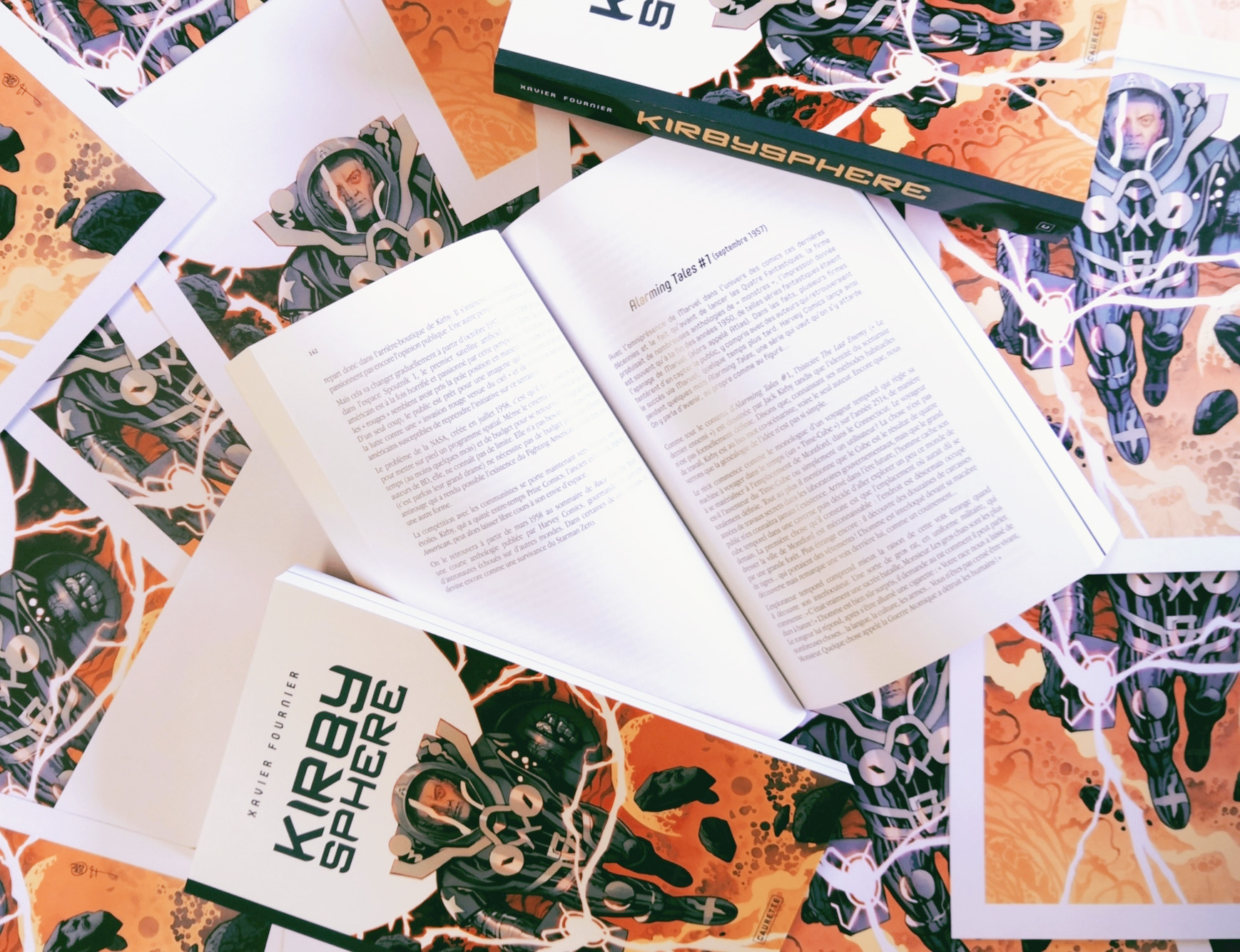À la base, ce projet est né d’un fond de chroniques « Oldies but goodies » réalisées pendant de nombreuses années pour le site comicbox.com où Xavier Fournier a mis à notre service sa grande érudition pour nous “re-raconter” le contenu d’un épisode (parfois une histoire célèbre, parfois un récit mal connu mais crucial). Référence, contextualisation, clin d’œil… La densité de la narration est telle dans l’œuvre de Kirby que c’est un véritable travail de titan qu’a entrepris l’auteur pour démêler l’écheveau de décennies de création. Qui d’autre aujourd’hui aurait pu nous démontrer avec maestria que telle case fait allusion à un roman, que tel figurant du deuxième rang est un clin d’œil à un homme politique, telle invention une référence à une découverte scientifique ou que la posture d’un Avenger est une référence à une figure mythologique peinte par un grand maître du XVIIIe ?