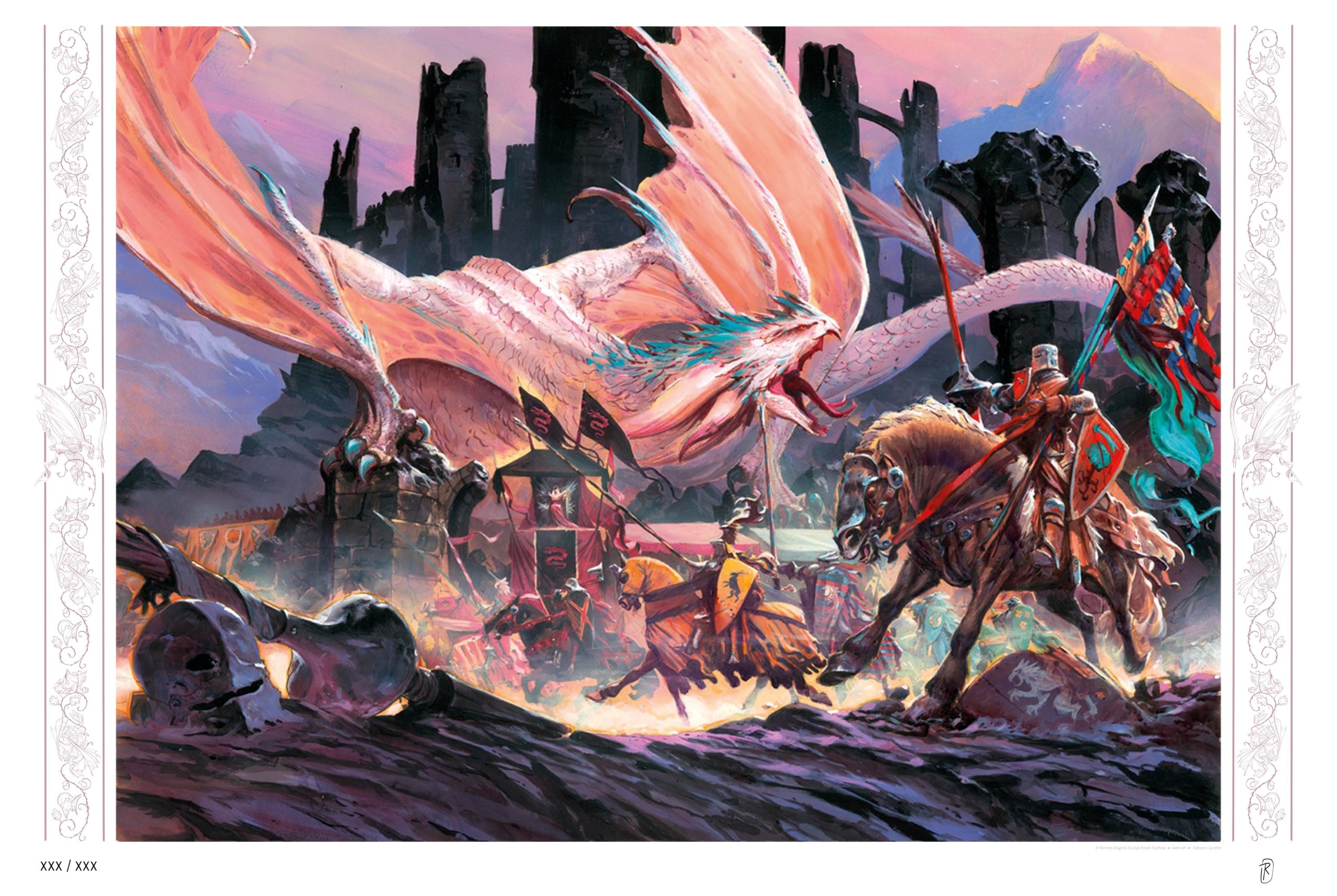 Cette illustration séduira les amateurs d‘univers médiévaux dont l’artiste est friand, les fans de séries bien connues (qui commence par Games et qui finisse par Thrones, peut-être…), et bien sûr, les amoureux de chevaliers et de dragons en tout genre !